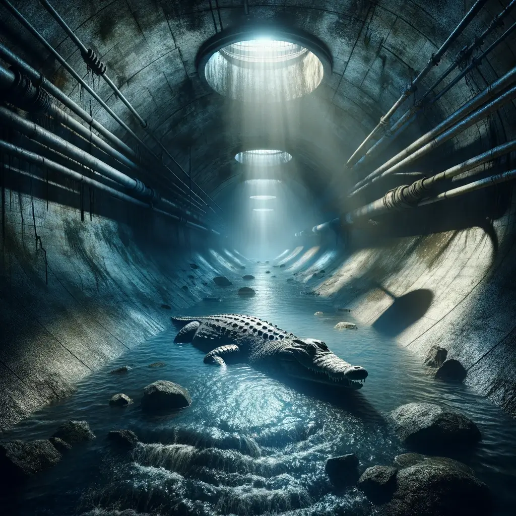 Una dintre cele mai răspândite legende urbane este aceea a crocodililor care trăiesc în sistemele de canalizare ale marilor orașe. Povestea susține că animalele de companie, precum crocodilii bebeluși, sunt adesea aruncate în toaletă de către proprietarii care nu mai doresc să le îngrijească, ajungând să trăiască și să se înmulțească în canalizările orașului. Deși această poveste a fost mult timp considerată o exagerare urbană, au existat cazuri documentate, precum descoperirea unui aligator în canalizarea din New York în anii 1930, care adaugă un sâmbure de adevăr legendei.